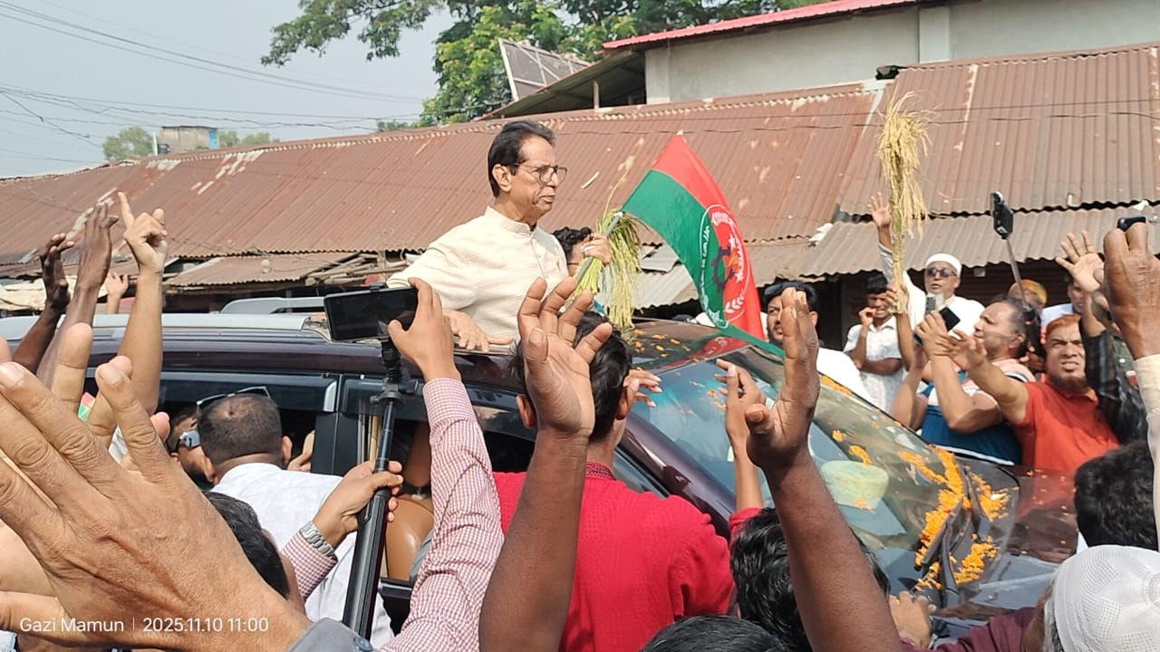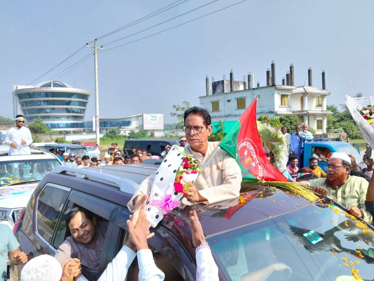 কুমিল্লা-১০ (নাঙ্গলকোট ও লালমাই) আসনে বিএনপি মনোনীত ধানের শীষ প্রতিকের প্রার্থী মো. আব্দুল গফুর ভূঁইয়া নেতাকর্মী ও সাধারণ জনগণের ফুলেল শুভেচ্ছা এবং ভালোবাসায় সিক্ত হলেন। গতকাল সোমবার সকাল ১০ টায় লালমাই দক্ষিণ বাজার থেকে তিনি কয়েক‘শ মাইক্রোবাস ও শত শত মোটর সাইকেল শোভাযাত্রার বহর নিয়ে ব্যাপক নির্বাচনী শোডাউন শুরু করেন। এসময় তিনি লালমাইয়ের দত্তপুর, বাগমারা বাজার, সৈয়দপুর, মেহেরকুল, দৌলতপুর, শিকারপুর, হাজতখোলা, বড়তুলা, দুর্গাপুর, আমুয়া, গোলাচৌ, কলমিয়া, ভুলইন, ভুশ্চি, জামুয়া, গোসাই পুষ্কুনি, গৈয়ারভাঙা, বাংলাবাজার, বেলঘর এবং নাঙ্গলকোটের যুক্তিখোলা, বাঙ্গড্ডা, মাহিনী, ঝাটিয়াপাড়া, মৌকরা, ঢালুয়া, মন্নারা, বক্সগঞ্জ, দৌলখাঁড় হয়ে নাঙ্গলকোট উপজেলা সদরের শহীদ মিনার সংলগ্ন মাঠে সংক্ষিপ্ত বক্তব্যের মধ্যে নির্বাচনী শোডাউন শেষ করেন। এর আগে তিনি লালমাই, বাগমারা, ভুশ্চি, বাঙ্গড্ডা, মাহিনী, ঝাটিয়াপাড়, মৌকরা, ঢালুয়া, মন্নারা, বক্সগঞ্জ এবং দৌলখাঁড়ে পথসভায় বক্তব্য রাখেন। বিএনপির প্রার্থী গফুর ভূঁইয়াকে স্বাগত জানাতে সড়ক পথের মোড়ে মোড়ে নেতাকর্মীরা জড়ো হয়ে ধানের শীষের পক্ষে শ্লোগান দেন।